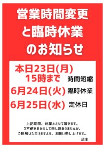 赤 目立つ 臨時休業 貼り紙 A4 チラシ