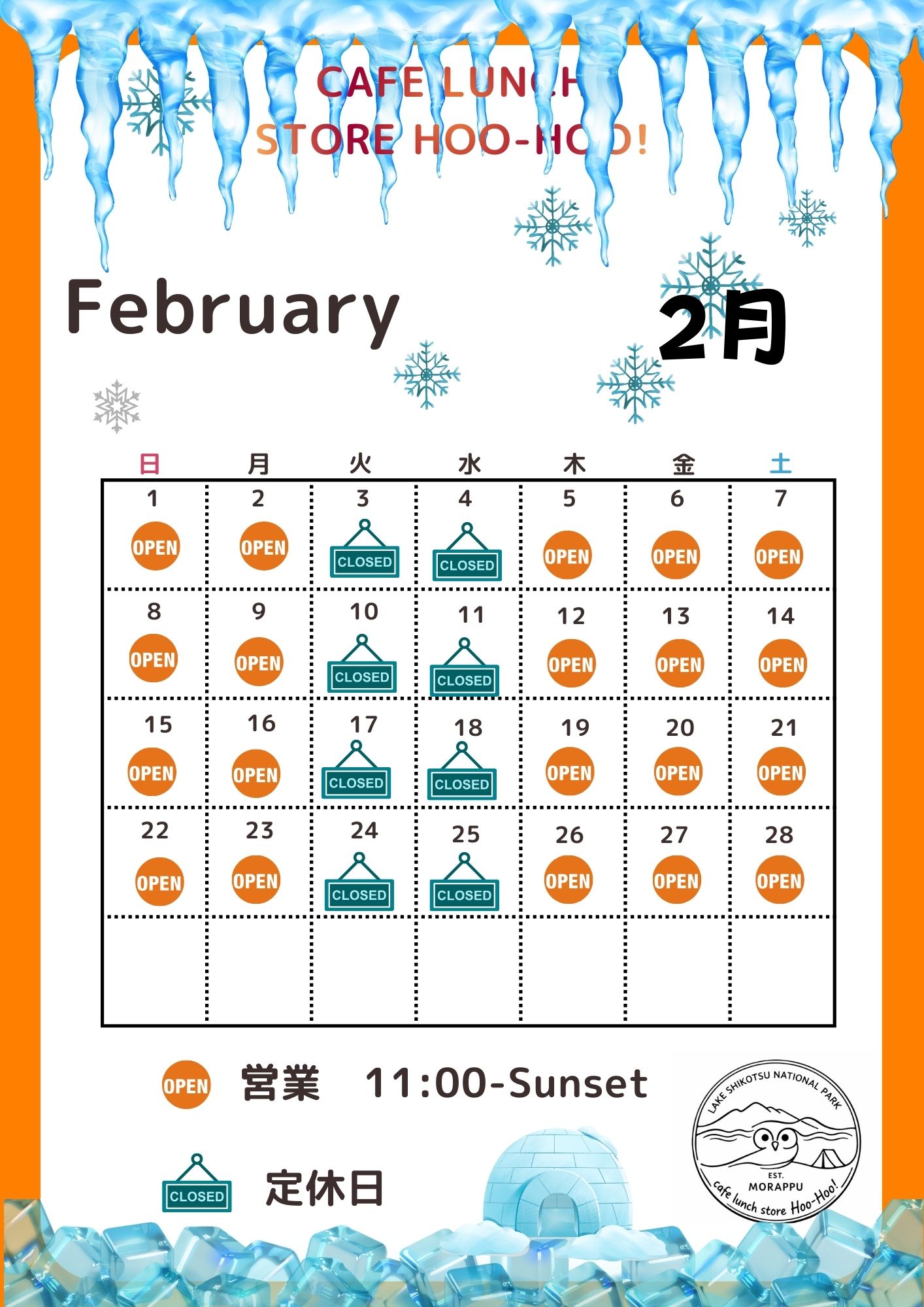 2026 2月 営業カレンダー