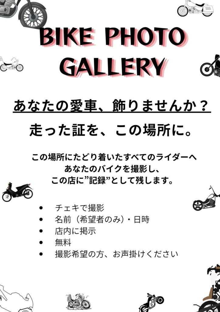 この場所にたどり着いたすべてのライダーへあなたのバイクを撮影し、