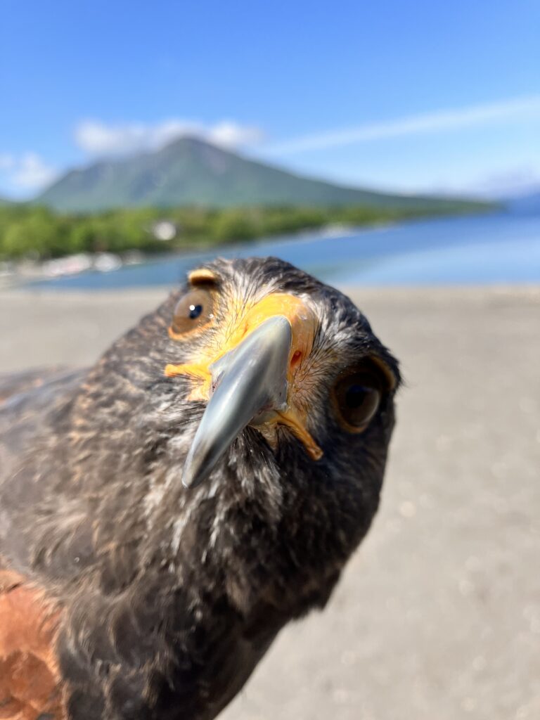 ミッキーは **ハリスホーク(Harris’s Hawk)**という種類の猛禽類で、